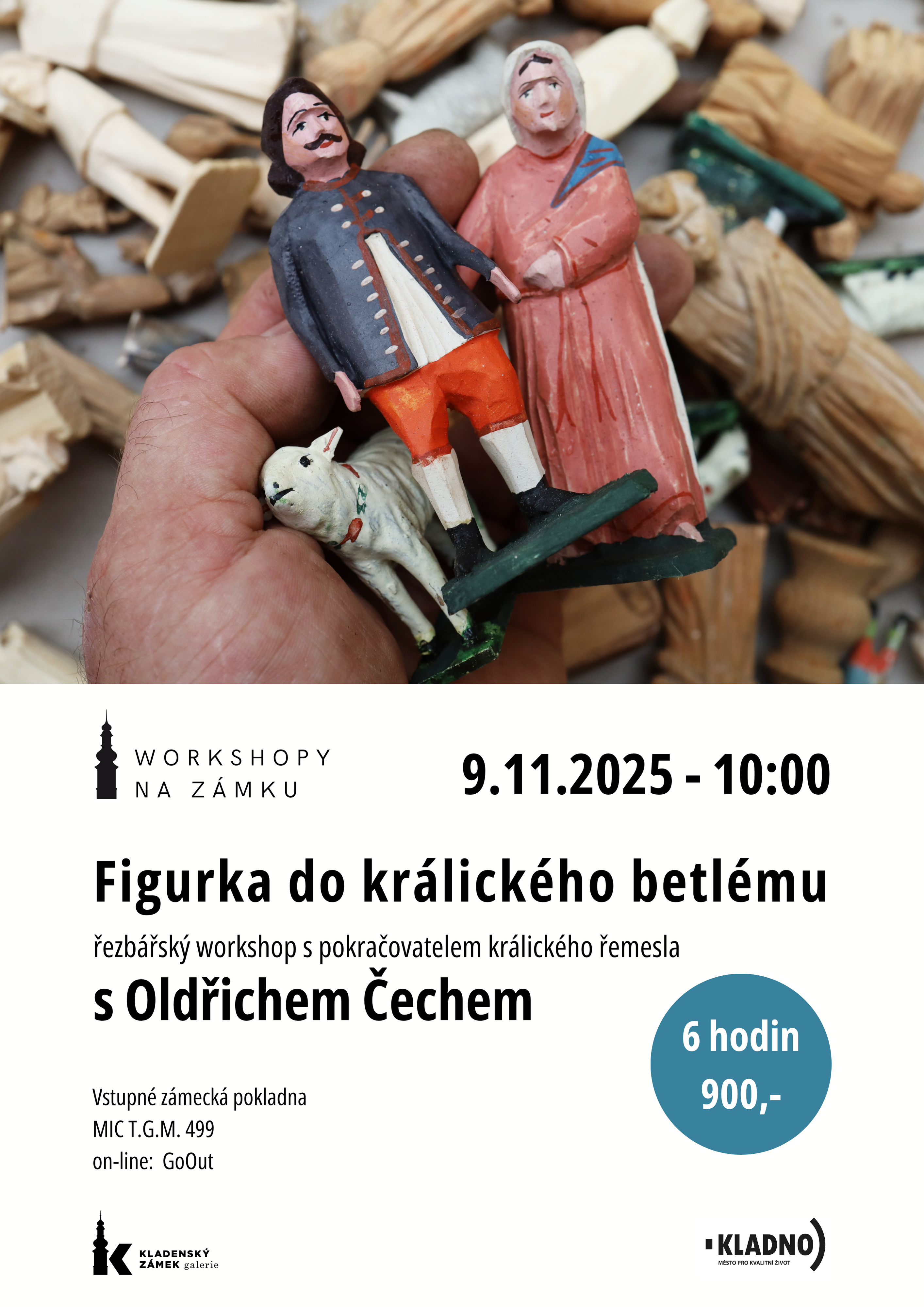Galerie Kladenského zámku nabízí v rámci svého programu další z pravidelných „workshopů na zámku“, a to celodenní kurz pro dospělé pod vedením proslulého řezbáře Oldřicha Čecha, pokračovatele králické řezbářské tradice.