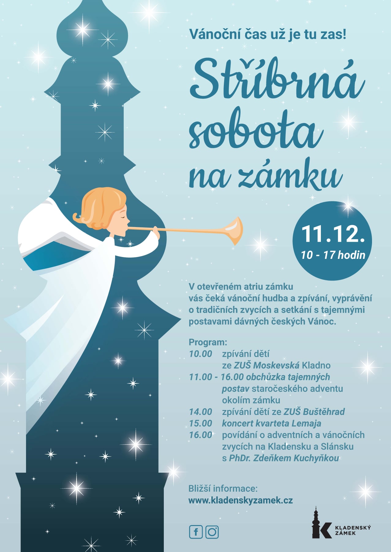 V 16.00 také o těchto postavách, jejich původech a rolích promluví historik a ředitel Sládečkova vlastivědného muzea v Kladně PhDr. Zdeněk Kuchyňka. Po celé vánoční období si navíc můžete v přízemí zámku prohlédnout výstavu, která právě tyto postavy popisuje.
