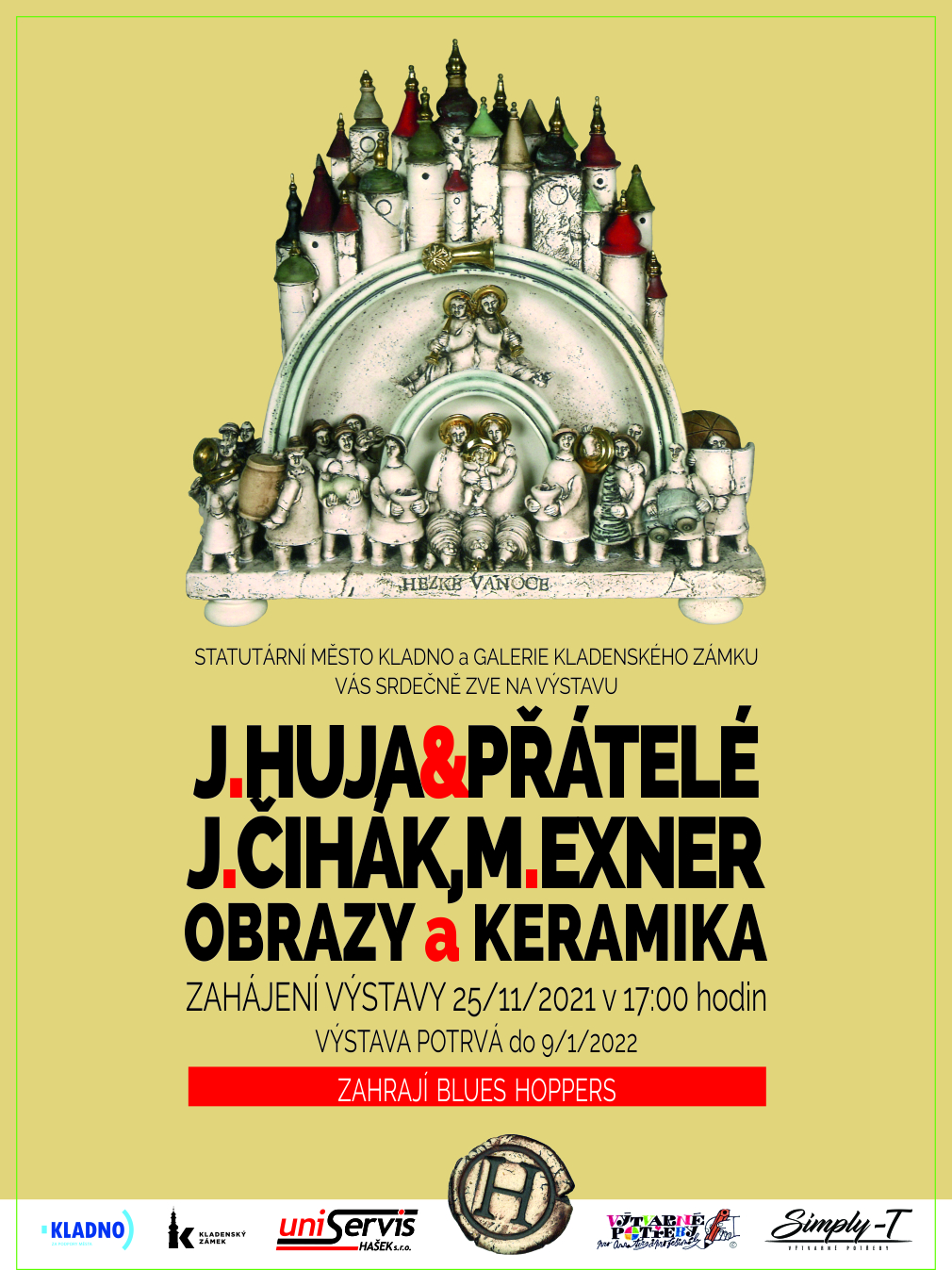 Statutární město Kladno a Galerie Kladenského zámku vás srdečně zve na výstavu J. Huji a jeho přátel, J. Čiháka a M. Exnera s názvem Obrazy a keramika. Zahájení výstavy v 17.00. Zahrají Blues Hoppers.
